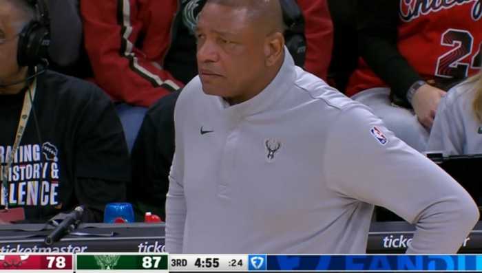 雄鹿上半场领先25分,但下半场被打出27-10,分差缩小至8分了,老里暂停但是没啥效果。
