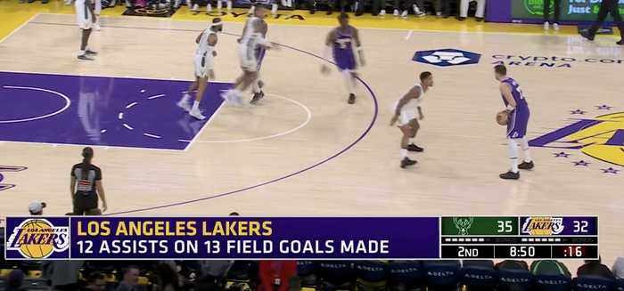 湖人目前13次运动战进球,产生了12次助攻,今天战术梳理得不错。