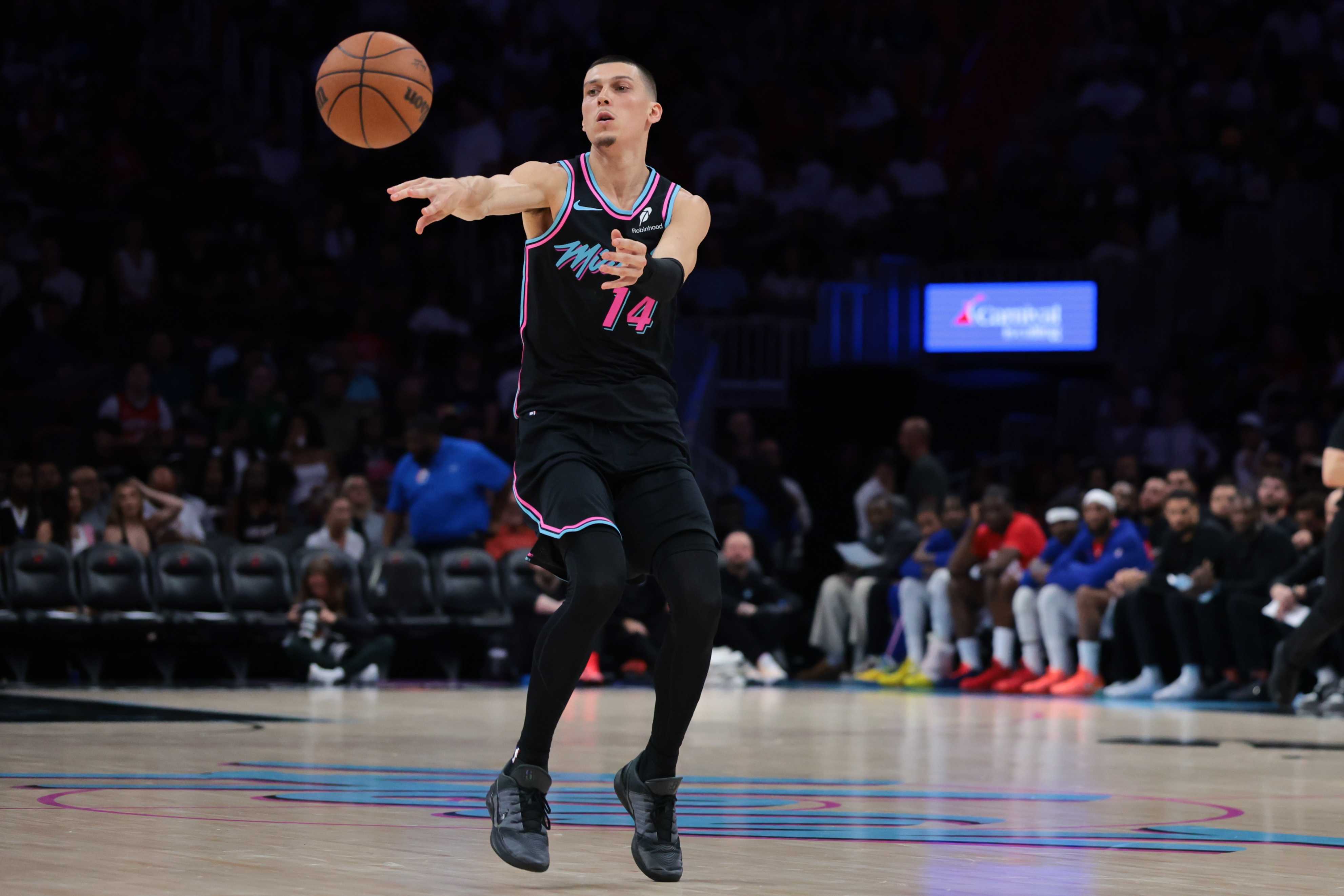 热火(34-29):希罗25分4板5助、阿德巴约21分7板2助、哈克斯18分7板7助、韦尔16分11板1助5断7帽、拉松16分1板4助、亚库乔尼斯11分6板3助、史密斯9分2板2助、维金斯8分4板1助2断、米切尔2分2板4助2断、加德纳1板